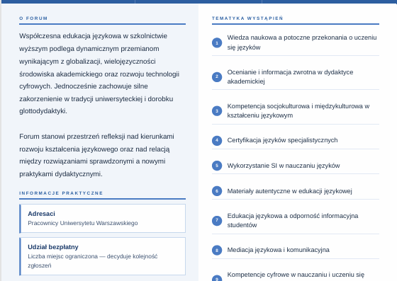 II Akademickie forum dydaktyki języków obcych: innowacja, tradycja i globalizacja w kształceniu językowym na uczelni wyższej.